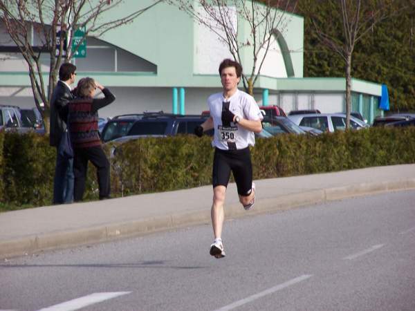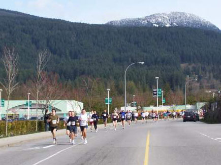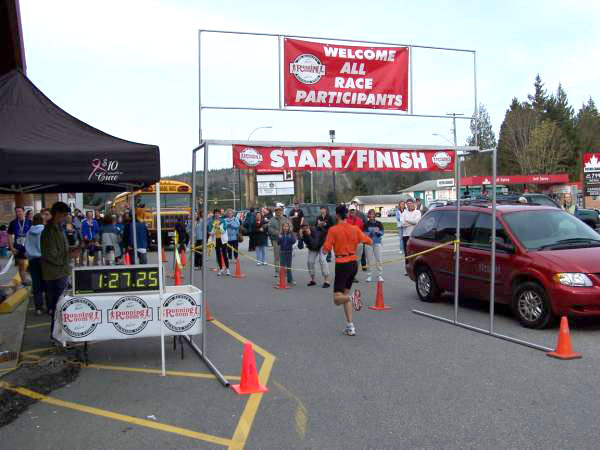 March 28, 2004, Gibsons BC — More than 430 individuals ran from Gibsons to Sechelt on Sunday morning in the 27th annual April Fool's Run Half-Marathon, with perfect spring weather conditions keeping spirits exceptionally high. After a few days of cold rain late in the week, race weekend brought sunshine and mild temperatures, much to the relief of organizers and participants.