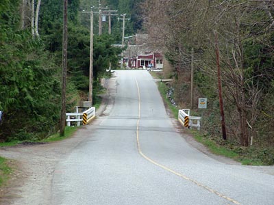 Approaching the end of Lower Road - bridge over Roberts Creek (the body of water, not the village!).