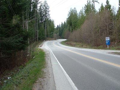 Now on the highway, this is at approximately 16.5 km. Approaching the provincial campground. Climb slightly before heading down the long 'Rat Portage Hill'.